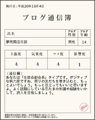 巷で噂のブログ通信簿やってみた。
