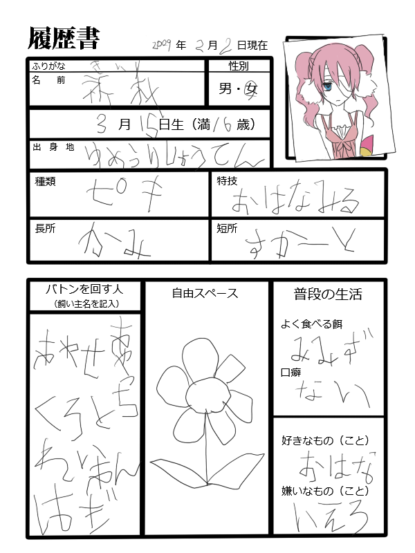 ・このバトンは自分の子の履歴書(?)を明記するバトンです。